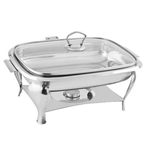 Al-Ansar Square Stainless Steel Serving Dish (Dish Donga) with Lid & Warmer Stand – Buffet Food Server for Home, Dawat & Catering